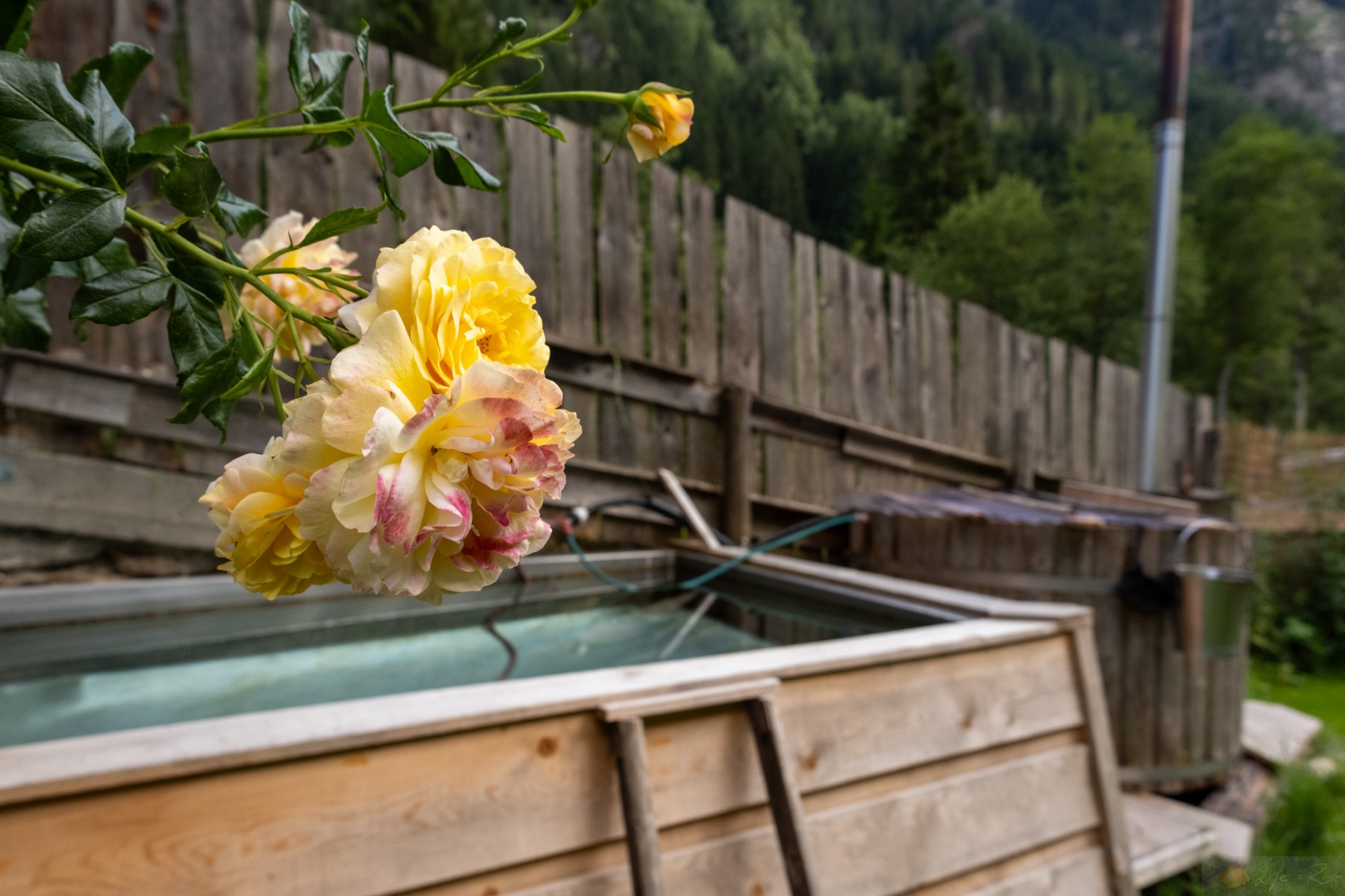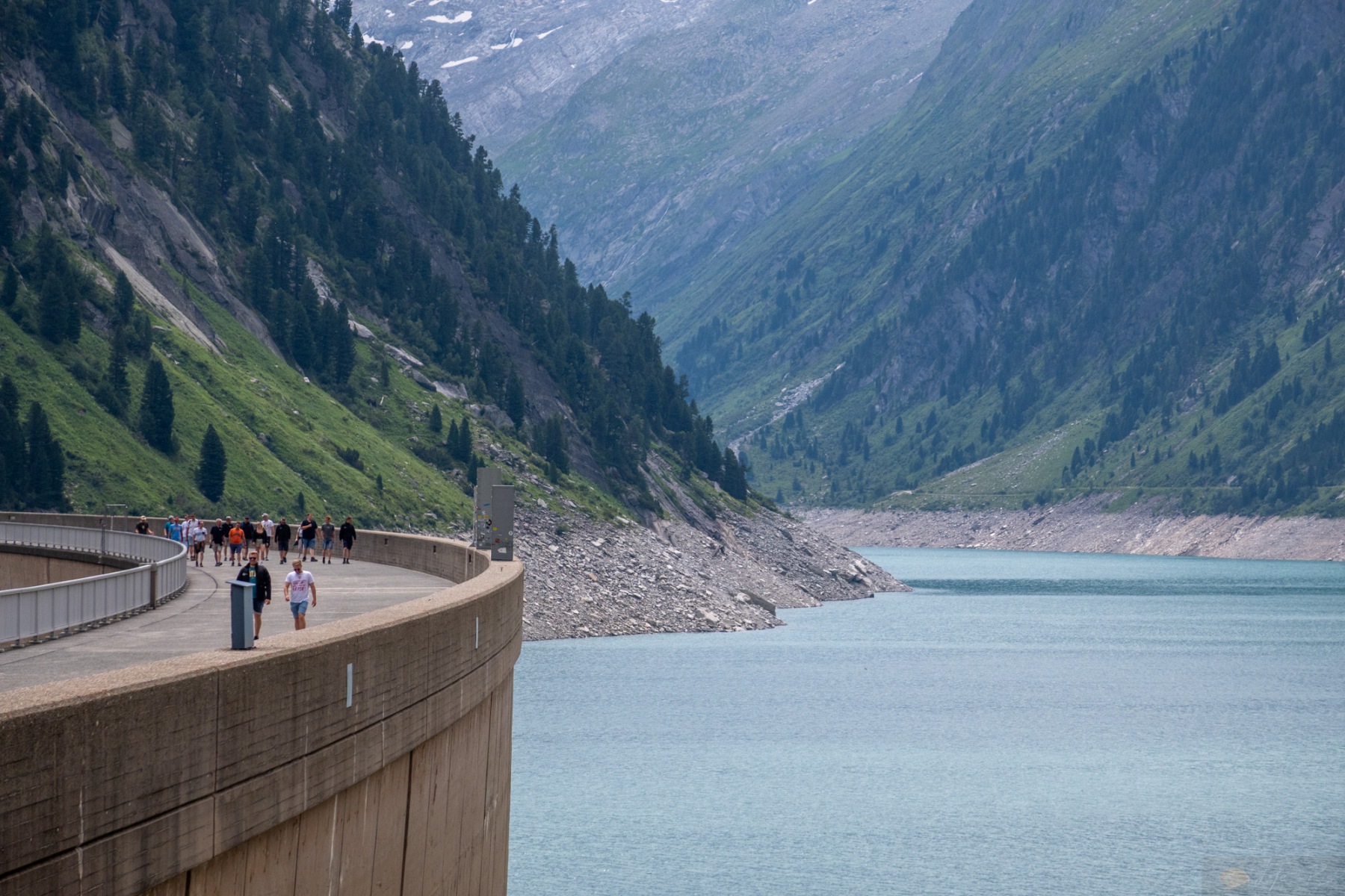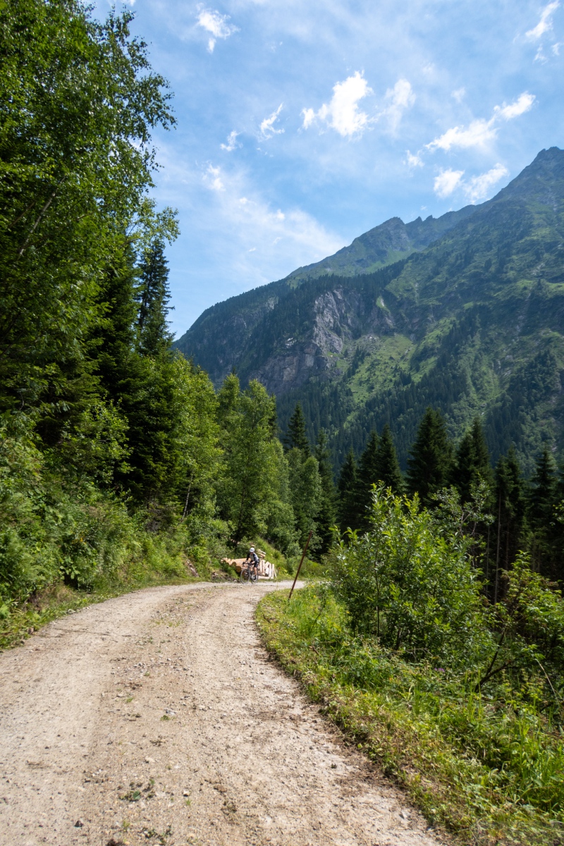 Der Samstag war dann gar nicht so zäh vom aufstehen her (werden wir schlauer?). Wir bauten Frühstück draußen auf der Terrasse auf, denn das Wetter war mal ausnahmsweise nicht so arschig. Wini/Mari kamen auch dazu und damit verzögerte sich auch der echte Start in den Tag. Lauras und meine Tagesplanung sah vor, dass wir mit den Gravels Richtung Schlegeisspeicher fuhren. Die anderen entschieden sich für den Klettersteig an der Nasenwand. Somit machten wir uns zwei auf. Es fühlte sich einfach super an wieder mehr zu radeln. Klar merkte ich noch deutlich das Defizit im Bein, aber unterwegs und draußen sein zählte hier. Die Straße bis zur Mautstation ging super. Danach zweigte der Bike Fahrweg ab und führte eine Schotterstraße hoch. Zunächst noch mehr Baustelle änderte sich dieser in einem wunderschönen Waldweg, der immer wieder Blicke nach hinten ins Tal öffnete. Nach den Straßen-Gallerien trafen wir wieder auf die Straße und sahen schon die Staudamm-Mauer vor uns. Noch mit Saft übrig in den Beinen kamen wir gut und eigentlich noch fit oben an. Ich hatte das schon als mega Etappenziel für mich deklariert und war schon etwas in Richtung Abfahrt orientiert. Laura meinte dann aber noch, ob wir nicht weiter zum Pfitscherjoch weiterfahren sollten. Hm…ok..Also am Stausee vorbei, der noch immer mega Blicke auf den „Gletscher“ nach hinten mit sich brachte. Danach kannte ich zwar den Weg, wie ich mal mit Floh auf den Schrammacher war bzw. die Griesferner Nordwand gemacht habe. Dennoch überraschte er mich mal wieder und ich hatte vergessen wie schön es hier oben war. Fast schon verwunschen schlängelte sich der Weg hoch zum Pfitscherjoch, den wir auch noch eine lange Zeit mit den Gravel Bikes hoch fuhren. Es wurde aber immer technischer und steiler, so dass zuerst Laura und dann später ich auch aufgaben. Bei mir es leider das rechte, also gesunde Knie, welches zickte. Ich merkte, wie so komisch Sehnen/Muskeln schmerzhaft rum sprangen, so dass ich mich erst mal setzen musste um in mich hinein zu fühlen. Es war jetzt kein Impact oder ähnliches da, daher hoffte ich auf eine einfache Überlastung. Somit entschieden wir uns hier umzudrehen. Runter ging es insgesamt überraschend gut, so dass wir schon bald an Lauras Radl waren und von hier die Abfahrt genießen konnten. Einfach eine mega schöne Tour. An der Hütte angekommen waren die anderen auch schon da und sogar Steffen. Somit begann der feuchtfröhliche Teil. Ich duschte und zog mich um, schaute nach meinem Pulled Pork, welches ich heute schon gegen 10 Uhr liebevoll einmassiert hatte und in den Ofen zum niedrig-garen rein gestellt hatte. Es sah gut aus. Der Nachmittag verging wie im Flug und so wie immer heizte Bäda auch den Hot Tub und Sauna an. Es wurde fröhlicher, es wurde nackter, wir hatten Spaß ;-). Gegen Abend machte ich mich dann mit Steffens Hilfe dran das Pulled Pork auseinander zu reißen bzw. auch mit Winis Hilfe dran, die Burger Buns zu machen. Ich hatte nicht gewusst, dass Kneten so eine „Fertigkeit“ ist. Naja. Auch das hat er dann gelernt. Das Abendessen viel wieder supa aus und mit der Hilfe von allen war alles schnell auch wieder aufgeräumt. Danach gönnten wir uns die nächste Hot Tub Rund und das obligatorische Lagerfeuer…ach…warum kann es nicht immer so schön sein. Am Sonntag war dann etwas Katerstimmung (kein Wunder, das Bier war leer). Wir frühstückten noch gemeinsam, räumten alles auf und dann heiß es auch schon wieder Abschied nehmen.