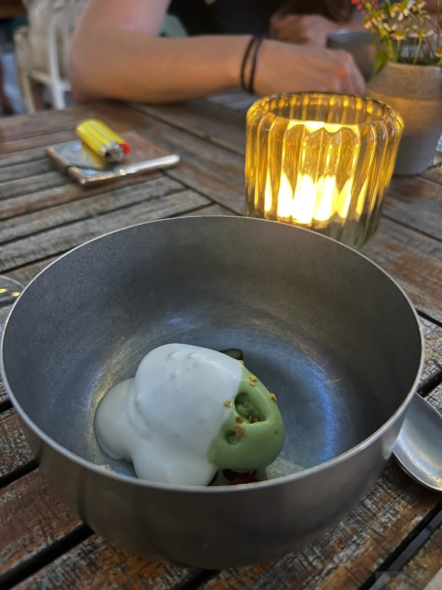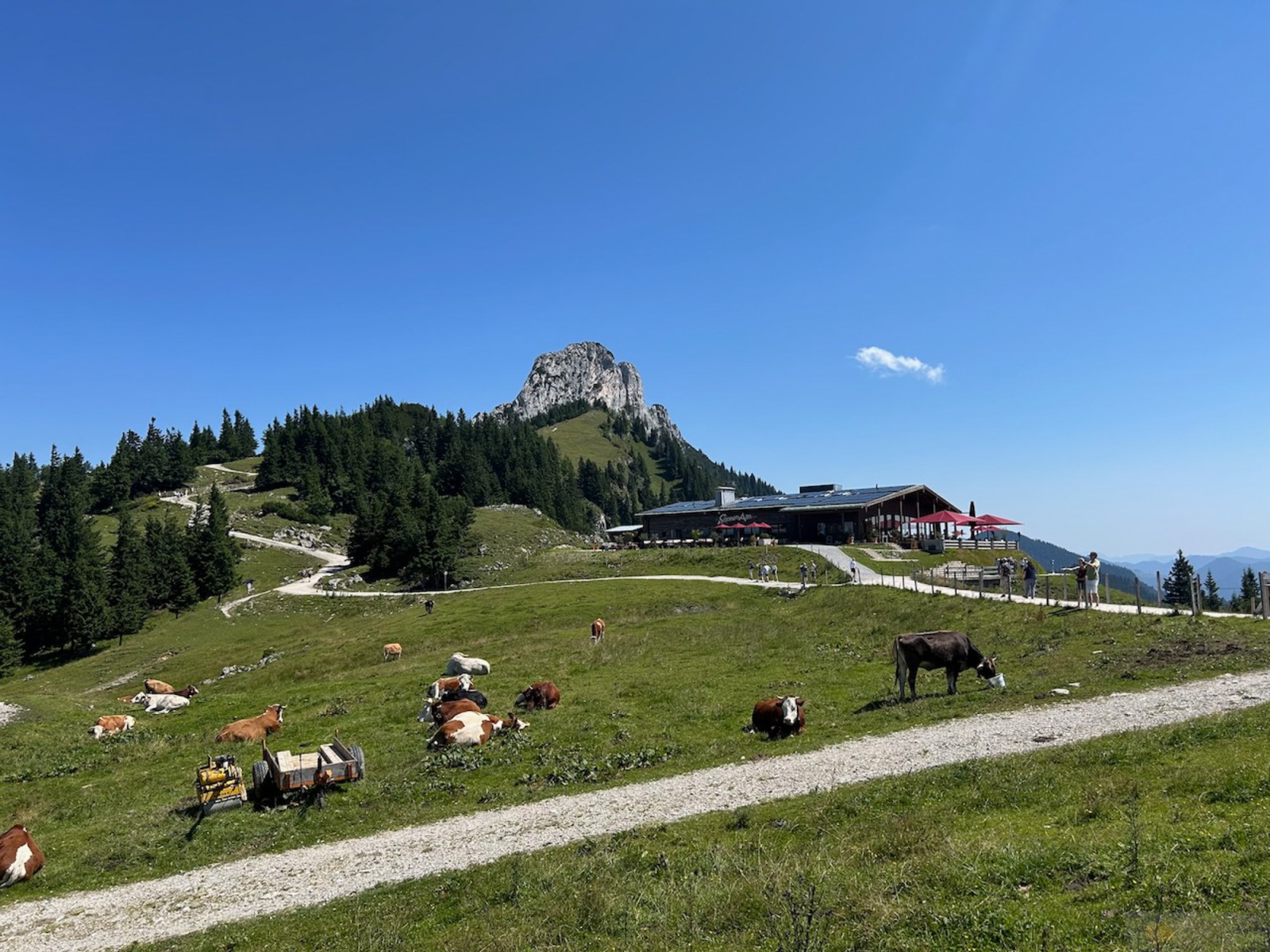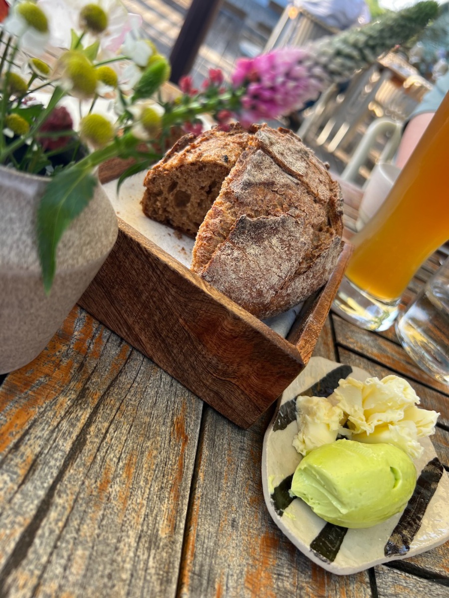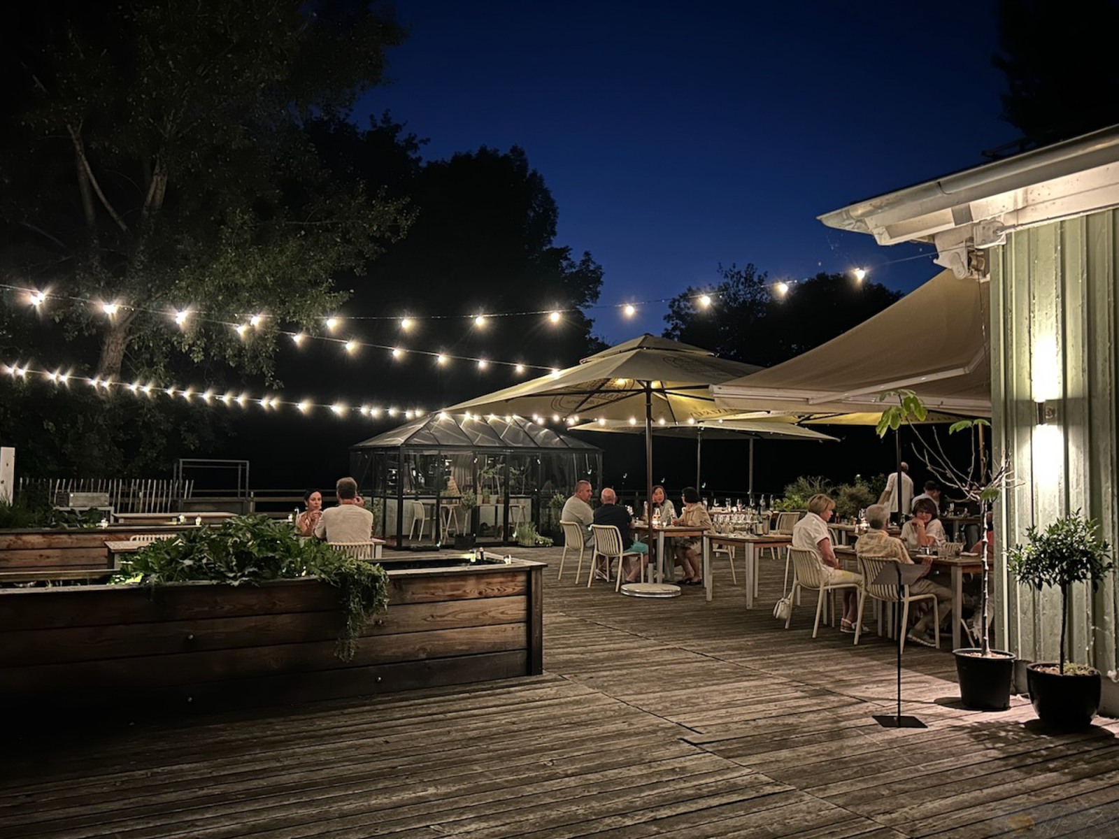 Bis zum Abend erholte ich mich einigermaßen gut, so dass wir uns dann ready machten um Sabine abzuholen. Dann ging es mit ihr ins June. Einem schönen Restaurant bei Übersee, welches viel regionale Küche machte und zuletzt sogar mit einem Stern geehrt wurde. Die Stimmung bzw. der Abend war genial. Es roch überall nach dem frisch gemähten Gras (auch wenn es mir heute zum Verhängnis wurde) und die Sonne tauchte alles ein schönes pastellfarbenes Licht. Am June angekommen setzten wir uns auf die Terrasse und genossen den Abend. Das Restaurant war in einem alten Bootshaus gebaut worden und es passte einfach perfekt zum Abend. Das Essen selber war sehr gut. Es traf zwar nicht immer 100%. unseren Geschmack, aber die Finesse und auch die Überraschungseffekte waren durchaus kreativ. So wurde der Salat in einer Frischhalte-Marinade serviert, bestehende aus Essig und Wasser und nachdem man das Salatherz daraus gegessen hatte wurde es mit Gin aufgegossen und man hatte ein weiteres Getränk. Auch der Rest war mega gut und wie gesagt einfach etwas besonders. Der Abend verging, die Mücken kamen, das Autan wurde gezückt, die Mücken gingen, gutes Essen kam, kaltes Bier blieb. Herrlich. Trotz dem beschissenen Tag war es ein wunderschöner Abend und ein toller Abschluss. Ich glaube Sabine hat es auch gefallen. Auf dich.