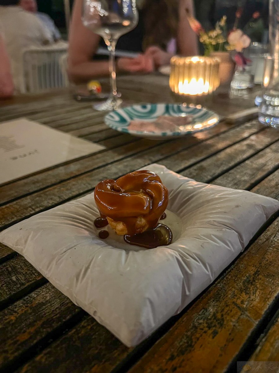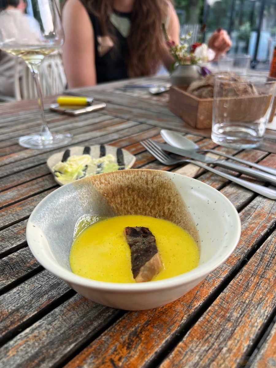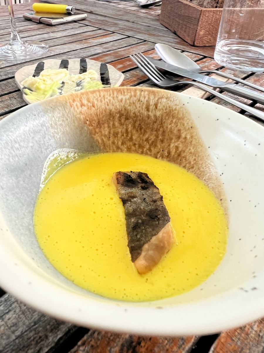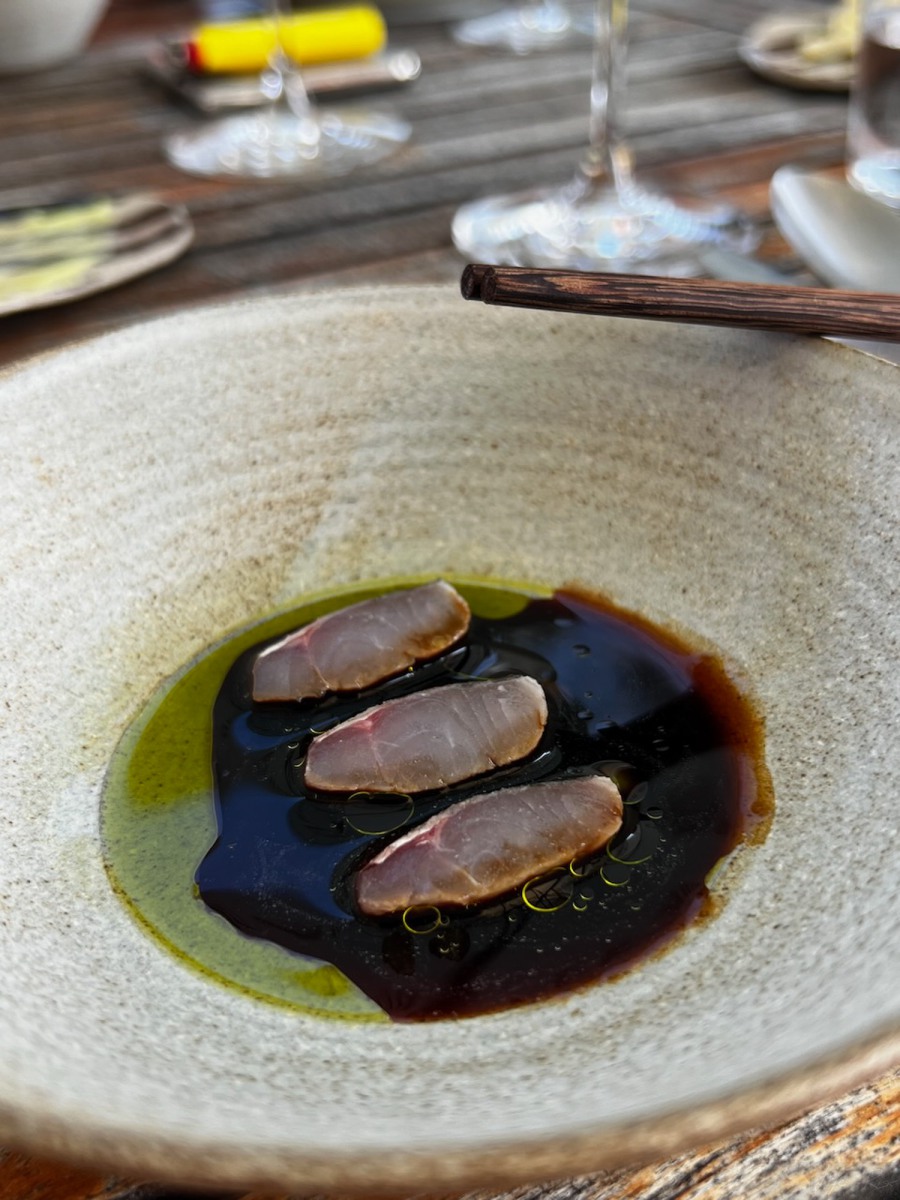 Bis zum Abend erholte ich mich einigermaßen gut, so dass wir uns dann ready machten um Sabine abzuholen. Dann ging es mit ihr ins June. Einem schönen Restaurant bei Übersee, welches viel regionale Küche machte und zuletzt sogar mit einem Stern geehrt wurde. Die Stimmung bzw. der Abend war genial. Es roch überall nach dem frisch gemähten Gras (auch wenn es mir heute zum Verhängnis wurde) und die Sonne tauchte alles ein schönes pastellfarbenes Licht. Am June angekommen setzten wir uns auf die Terrasse und genossen den Abend. Das Restaurant war in einem alten Bootshaus gebaut worden und es passte einfach perfekt zum Abend. Das Essen selber war sehr gut. Es traf zwar nicht immer 100%. unseren Geschmack, aber die Finesse und auch die Überraschungseffekte waren durchaus kreativ. So wurde der Salat in einer Frischhalte-Marinade serviert, bestehende aus Essig und Wasser und nachdem man das Salatherz daraus gegessen hatte wurde es mit Gin aufgegossen und man hatte ein weiteres Getränk. Auch der Rest war mega gut und wie gesagt einfach etwas besonders. Der Abend verging, die Mücken kamen, das Autan wurde gezückt, die Mücken gingen, gutes Essen kam, kaltes Bier blieb. Herrlich. Trotz dem beschissenen Tag war es ein wunderschöner Abend und ein toller Abschluss. Ich glaube Sabine hat es auch gefallen. Auf dich.