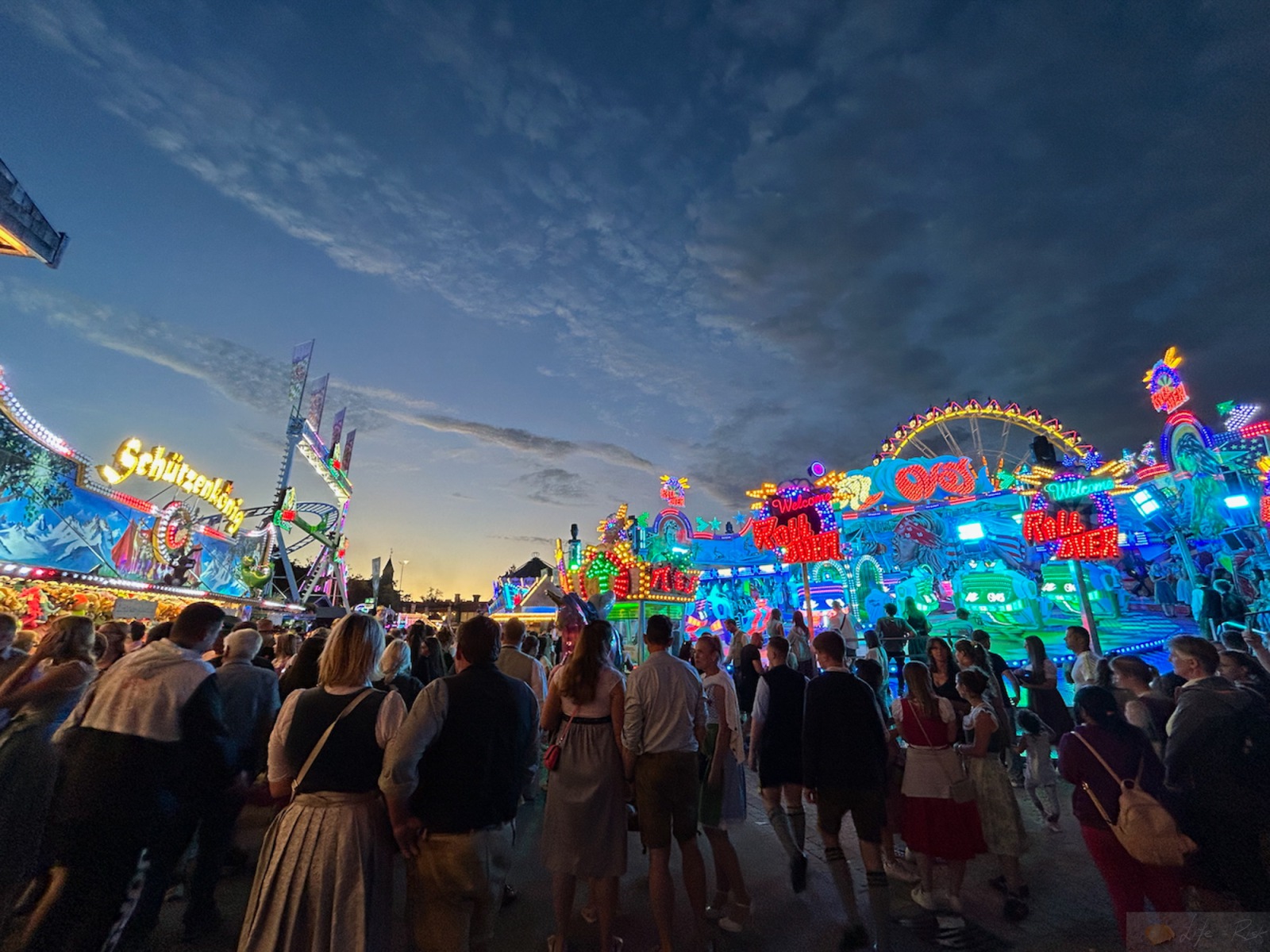 Es war schon fast eine Tradition mit meiner Mutter auf die Wiesn zu gehen, so auch dieses Jahr. Ich holte sie in Tracht nach der Arbeit ab und wir fuhren direkt zum Haupteingang am Flötzinger Zelt. Dort wartete schon Laura im Dirndl und während ich das Auto parkte genossen die beiden den Trubel. Als ich dann da war starteten wir gleich zur Tischsuche. Das Wetter war zum Glück gut, so dass wir gleich im Biergarten vom Flötzinger einen Platz unter den Schirmen zu dritt fanden. Während ich Steckerlfisch besorgte (der ewig dauerte) bestellten die beiden schon die erste Runde. Etwas Verzögerung gab es dann noch beim Huber mit den Brezn, aber irgendwann war alles da inkl. Lauras Hendl. So genossen wir in schönen Gesprächen die Atmosphäre. Mei..immer wieder schön. Anschließend machten wir noch einen kurzen Spaziergang um die Wiesn während meine Mutter noch am Tisch sitzen blieb. Auch schon fast obligatorisch fuhren wir das Kettenkarussell….herrlich. Wirklich. Dieses unbeschwerte Gefühl, der Blick über die Wiesn, so viel Erinnerung, so viel Gefühl..dann noch natürlich mit Laura. Es war einfach schön. Anschließend spielten wir noch Glückslos (ein Bounty war der Gewinn) und kauften noch Mandeln. Danach setzten wir uns noch kurz zu meiner Mutter und während Laura das Auto holte ging ich mit ihr eine kleine Runde und wurden dann abgeholt. Wie gesagt..die Wiesn..mehr als ein Volksfest. Es ist ein Gefühl.