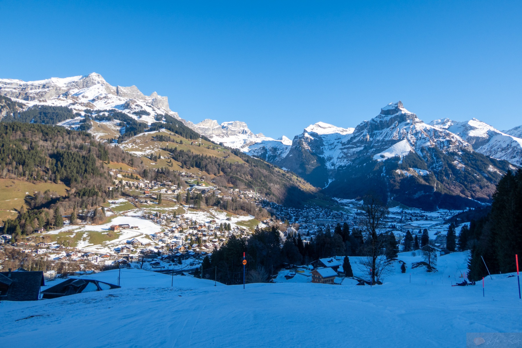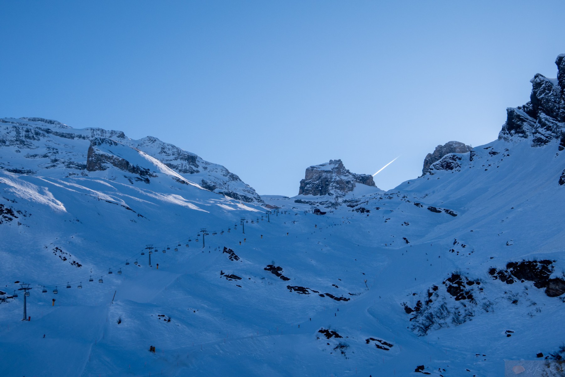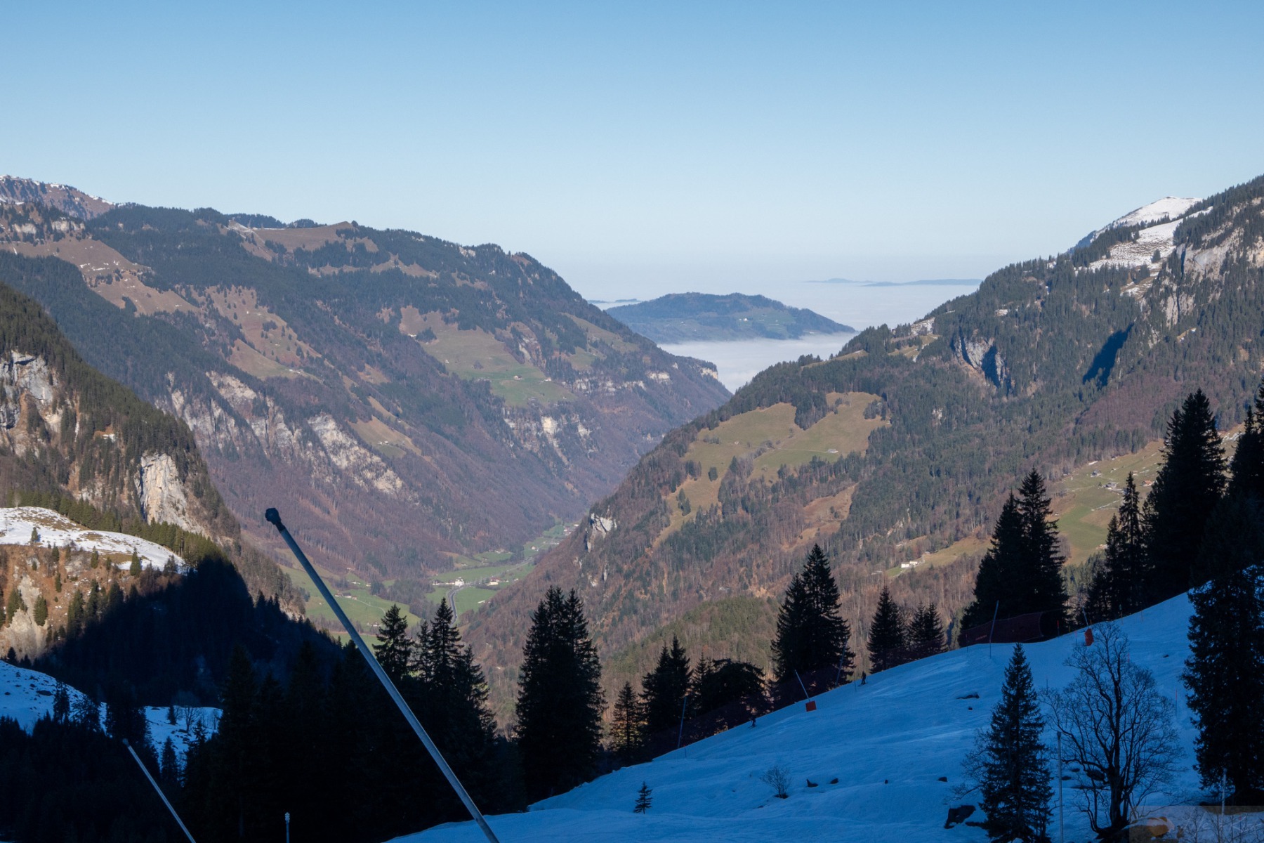 Heute wollte ich es wissen. Ja, der Schnee war nicht mehr wirklich da, aber auf der Nordseite mehr als genug um eine Pistenskitour zu gehen. So fuhr ich mit dem Bus zur Talstation während Laura zur Brunni hoch lief um zu fliegen. Der erste Abschnitt ging wie beim letzten Mal. Tatsächlich ganz gut. Ich mochte das neue Setup und genoss sogar den Ziehweg hoch nach Untertrübsee. Das Kanonenrohr stellte mich dann kurz vor eine Herausforderung, nicht wegen der Steilheit sondern mehr, weil der Schnee fast nur der Kunstschnee war und dieser sich einfach nicht richtig verband und mehr nach unten rollte als hielt. Ich war aber nicht allein. Einige Skifahrer hatten auch ihre Probleme und schnallten sogar auf der Umfahrung vom Kanonenrohr ab und liefen dann runter. Verrückt. Ich selber merkte hier schon deutlich die Ausdauer. Ich war halt nix mehr gewohnt. Nach dem Kanonenrohr musste ich eine kurze Pause machen, die aber ob dem Schatten und der Kälte echt kurz ausfiel. Ich erreichte dann nach dem Endstück das „Flachstück“ bis zum Trübsee und tatsächlich war ich zwar fertig, aber es ging mir besser als gedacht. Ich zog das Stück noch durch und blickte immer wieder hoch auf die Bergspitzen..irgendwann wird’s wieder gehen. Es war eine verrückte Mischung. Einerseits wollte ich nicht zu viel darüber nachdenken, andererseits war ich zwischen Bangen und Hoffnung. Am Ende hatte ich es selber in der Hand. Ich musste einfach nur weitermachen. So motiviert erreichte ich ohne weitere körperliche Probleme den Lift und fellte ab…Geil. Die erste „ernsthafte“ Skitour seit dem Unfall. Es war ein schöner Tag, somit war die Aussicht hier oben schon geil, aber wie gesagt, es fehlte brutal an Schnee. Dafür war der Trübsee vereist und die Leute fuhren Schlittschuhe drauf. Schon auch geil. Das große Sulz hingegen war schon eher traurig. Aber es fanden sich doch ein paar Skifahrer, die runter kamen. Nächstes Jahr wieder, denn dieses Jahr fand ich die „Abfahrt“ von Skilift zur Gondelstation schon herausfordernd. Boah..ich war froh dann doch wieder in der Gondel runter zu sitzen, ohne Verletzung und es dennoch geschafft zu haben.