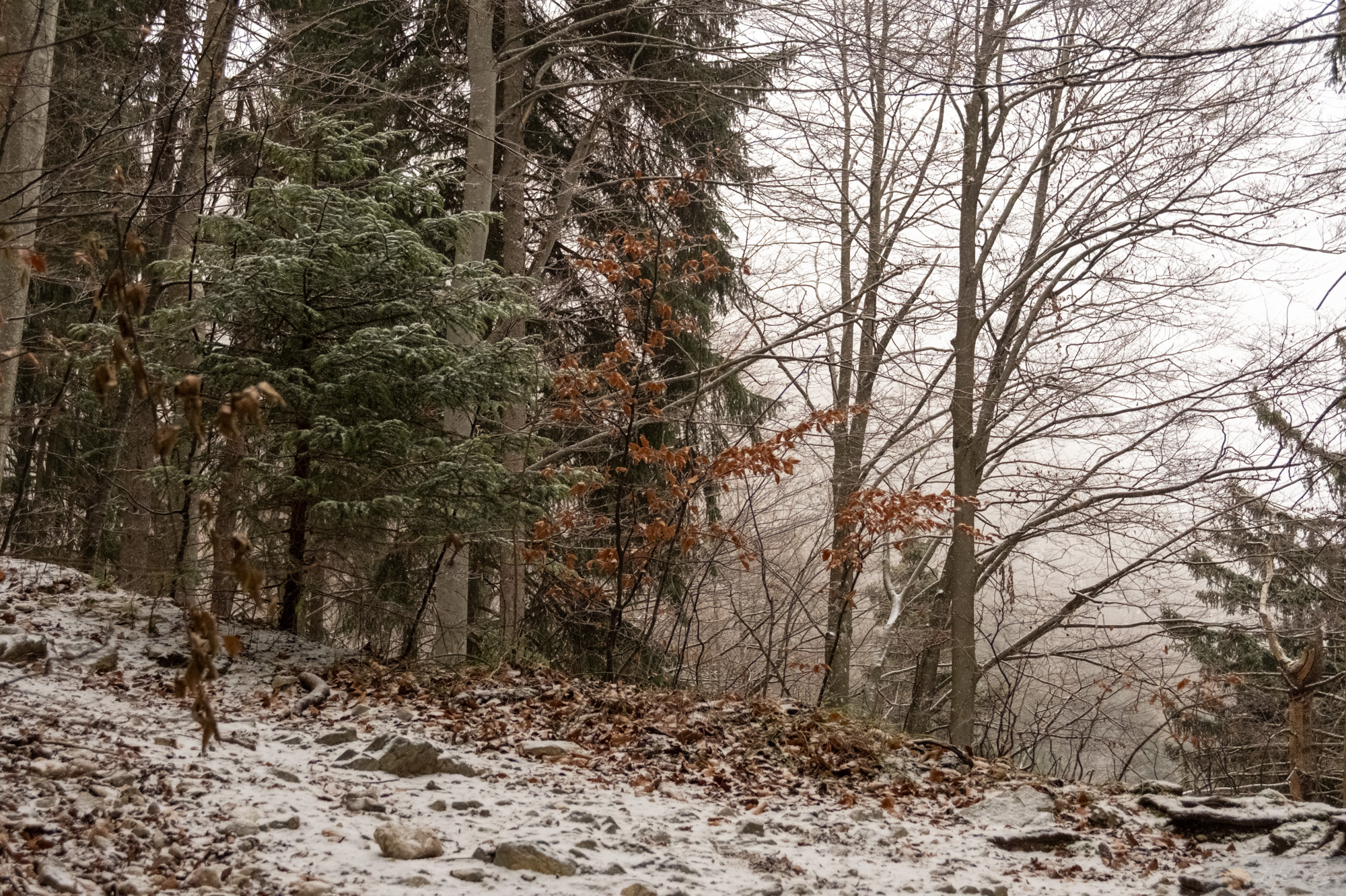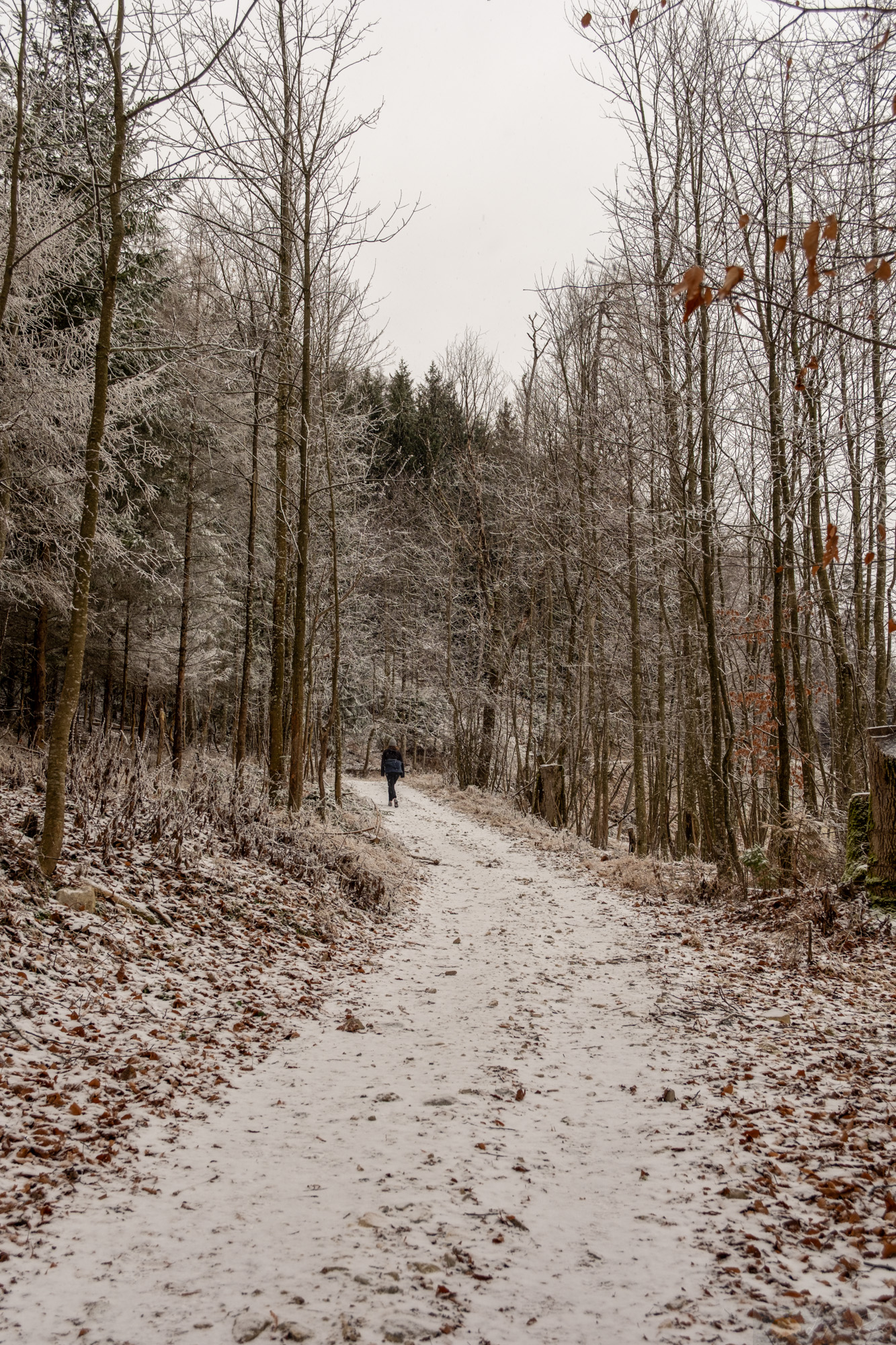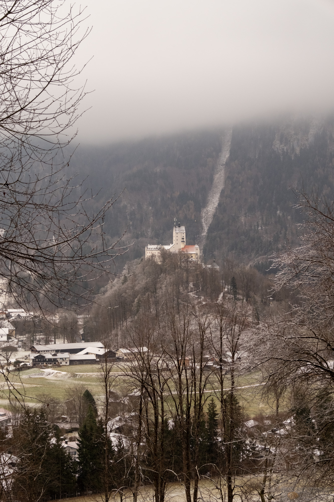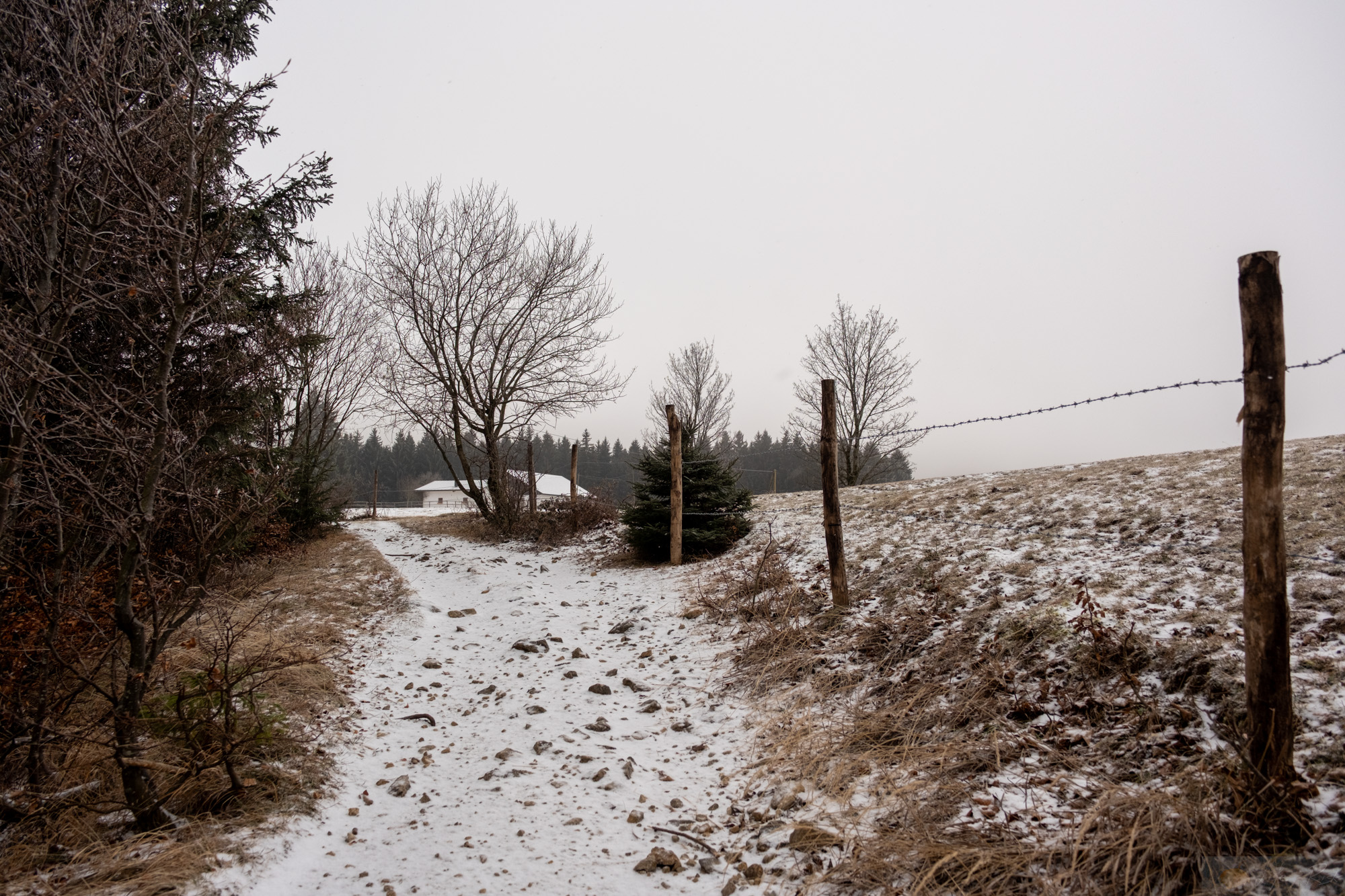 Irgendwann zog es uns doch raus..und ja, genau dann als der Schnee kam. Die Tage davor war es trocken (wie seit über einem Monat) und genau heute wo es schneite wollte ich raus. Aber die Stimmung war mega. Wir spazierten zur Hofalm hoch und es fühlte sich gut an. Die Luft crisp, der Wind kalt aber rein. Oben an der Hofalm war vom Schnee von damals nicht viel übrig. Nur den Nordwind spürten wir. Aber wie gesagt, die tiefen Wolken, der leichte Schneefall…ich mag diese gedämpfte Stimmung. Es ist nicht nur alles irgendwie leiser und langsamer, auch die Farben sind etwas gewichen…einfach faszinierend diese Zeit.