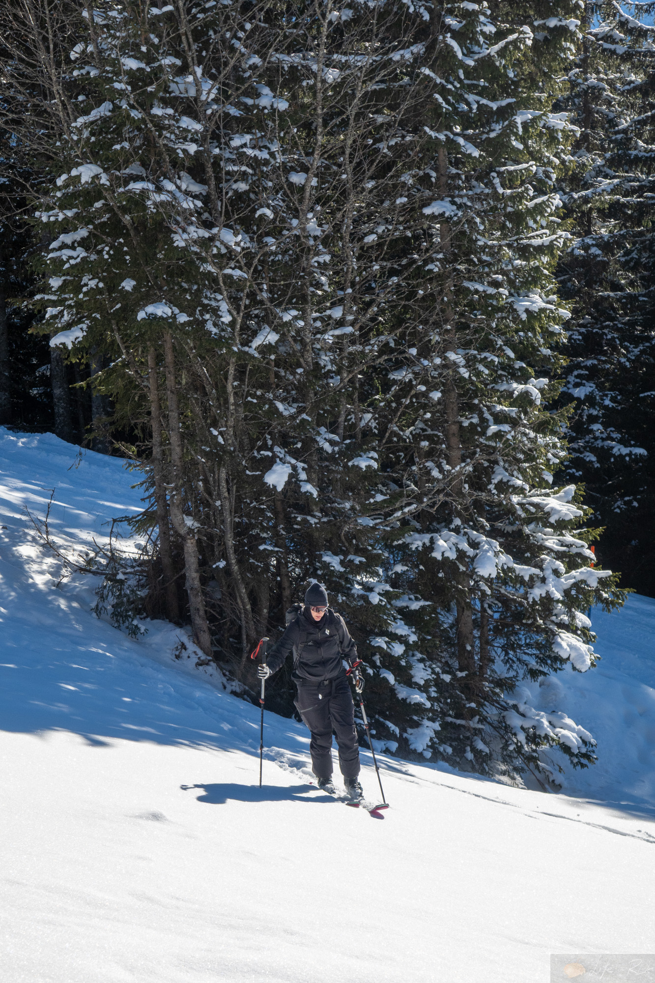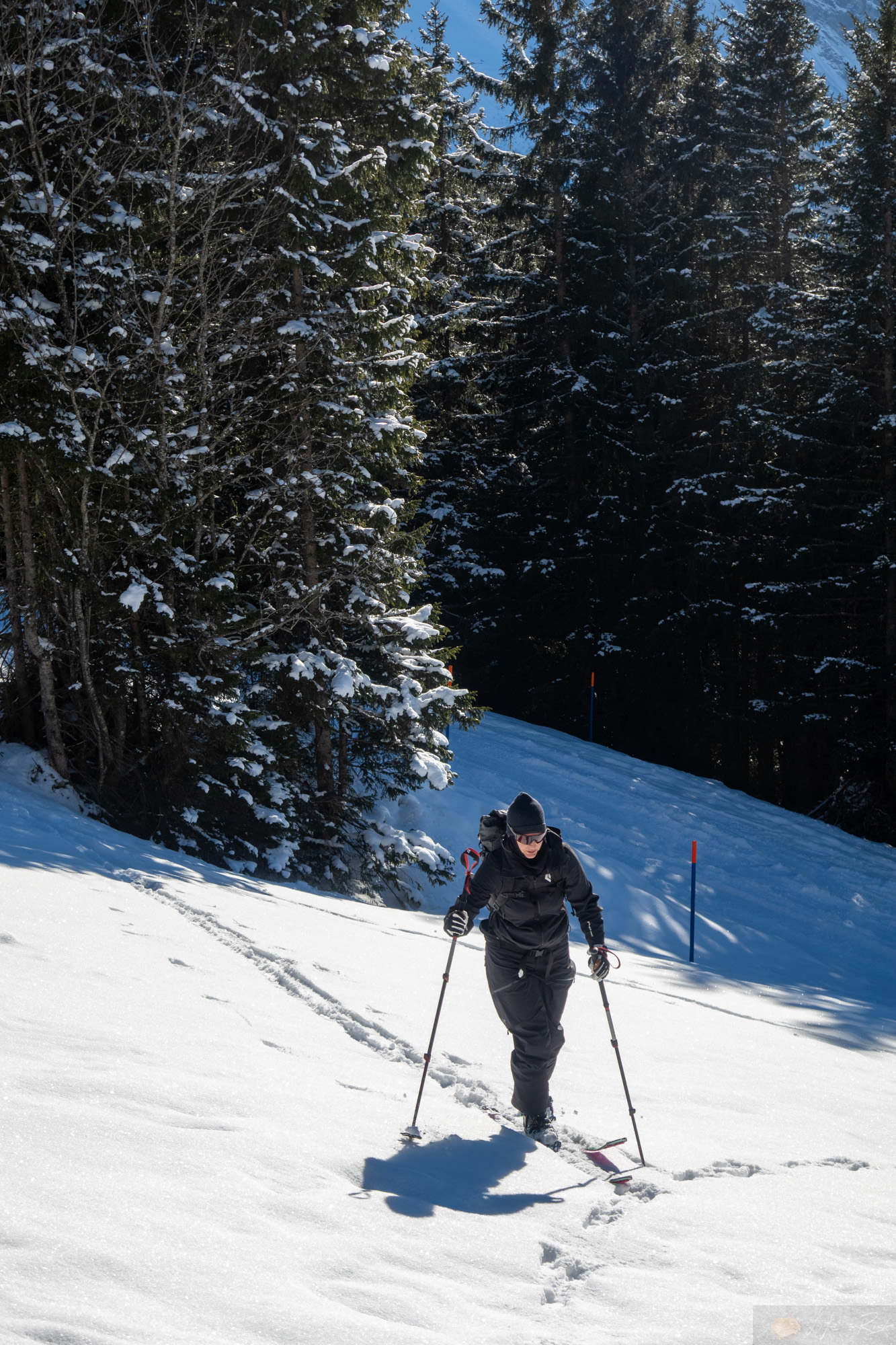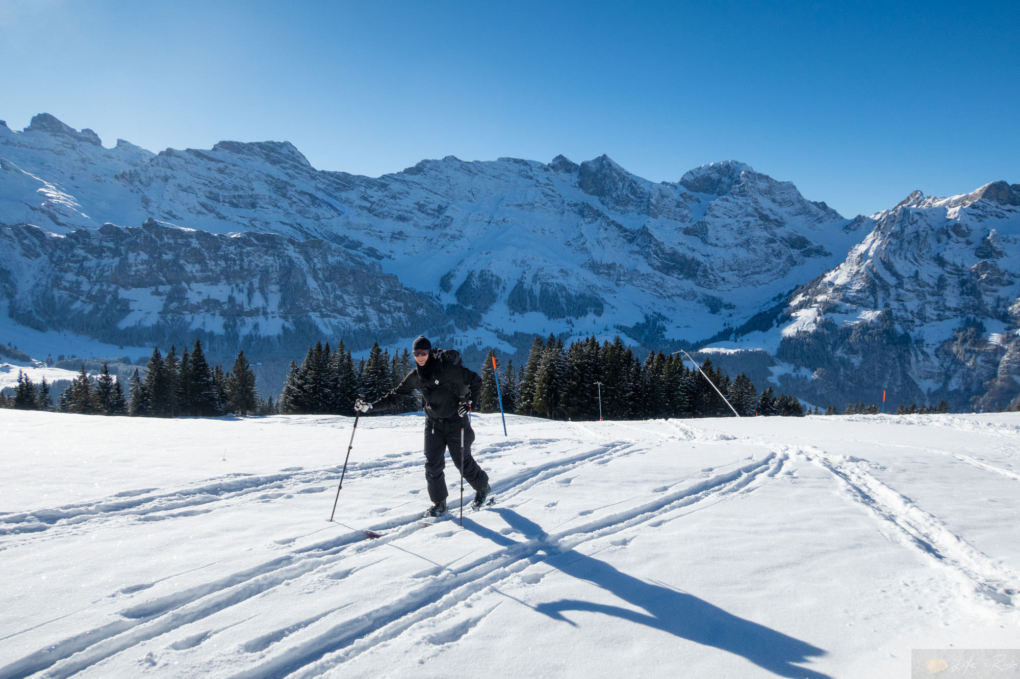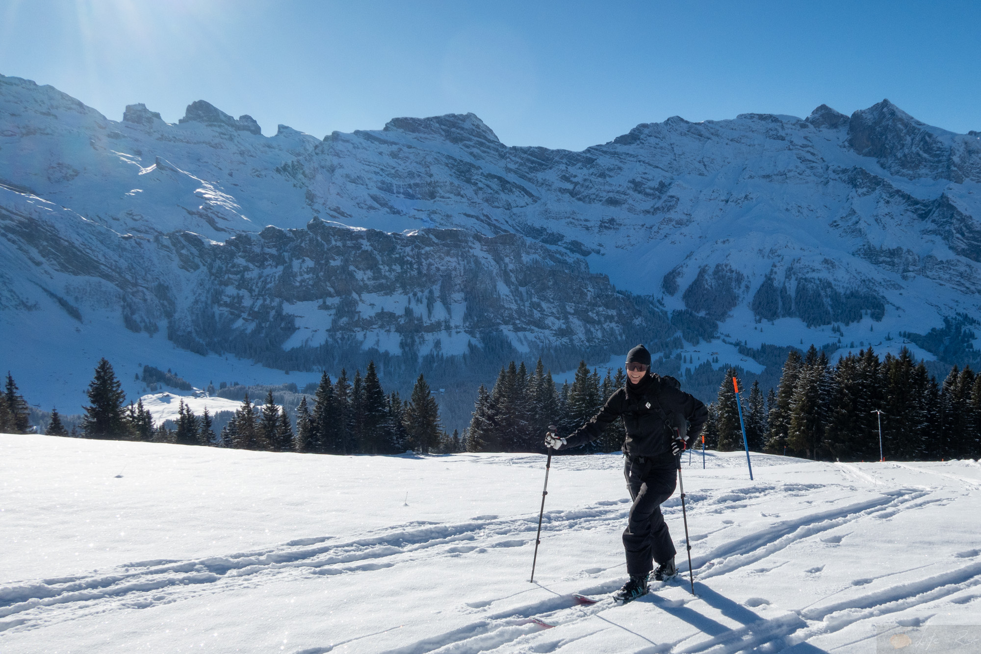 Motiviert ging es am Sonntag aus unserem Kälteloch. Laura holte ihre Ski vom Service ab, ich machte mich mit meinen äh Lauras Ski auf. Wir trafen uns an der Talstation Ristis und fuhren eben bis dahin hoch. Danach machten wir uns ready für unsere erste Skitour seit meiner Verletzung. Fühlte sich ungewohnt an..auch, dass wir beide in der Sonne standen und schon nach den ersten Metern die Jacken auszogen. Es war schön wieder zusammen unterwegs zu sein. Langsam und mit schönen Tempo gings dann neben der Piste hoch. Das alles lief gut….ich machte mir aber schon etwas Gedanken, wie ich denn wieder runter komme. Denn der Lift hatte einen Rollteppich zum aufsitzen, der aber für die runter Fahrt fehlte. D.h. mit Ski an den Füßen konnte ich nicht runter fahren. Aber in der Hand halten??? Egal. Erst einmal hoch. Die Piste sah gut aus…griffig, aber nicht zerfahren. Wir wählten ab der Mitte dann den Weg über die nicht geöffnete blaue Piste, die oben raus echt interessant wurde. Der Schnee war kaum noch vorhanden bzw. kein Untergrund. Es rutschte gut auf dem Gras, so dass ich mich entschloss die Ski abzumachen und zu Fuß hoch zu gehen. Laura wählte ein steileres Stück im Schatten, welches gut ging. wir trafen uns dann oben am Winterwanderweg wieder beide mit Ski und machten die letzten Meter noch bis zur Hütte. Beim Startplatz Brunni blieben wir noch kurz stehen, denn es waren tatsächlich Leute in der Luft. Schon geil…aber bei -15°C wäre es mir auch zu kalt. An der Brunnihütte oben machten wir nebenan Rast und genossen die Wärme. In mir kam schon der Gedanke auf, ob ich denn nicht versuchen sollte runter zu fahren. Die Piste sah echt gut aus. So bequatschte ich das kurz mit Laura und schickte sie dann vor. Voller Konzentration und kompletter Körperanspannung machte ich die Schwünge runter. Tatsächlich war sogar etwas Rhythmus dabei. So wie früher. Es fühlte sich trotz der Anstrengung super an. Unten musste ich dann nur aufpassen konzentriert zu bleiben. Unversehrt kam ich bei Laura an und ich freute mich innerlich. Ein kleiner Schritt…aber ein erster Erfolg. Wir fuhren mit der Bahn runter und während Laura kurz noch einkaufen ging, schleppte ich die Ski zurück zur Bushaltestelle bzw. Camping. Beim Warten auf den Bus schaute ich wieder rüber zum Großen Spannort und es kam mir das Lied von den Onkelz wieder zurück, welches ich mal im vorletzten Sommer gehört hatte, als ich hier geflogen bin…“Wir haben noch lange nicht genug“. Genau…ich hab nicht genug…es ist der Anfang.