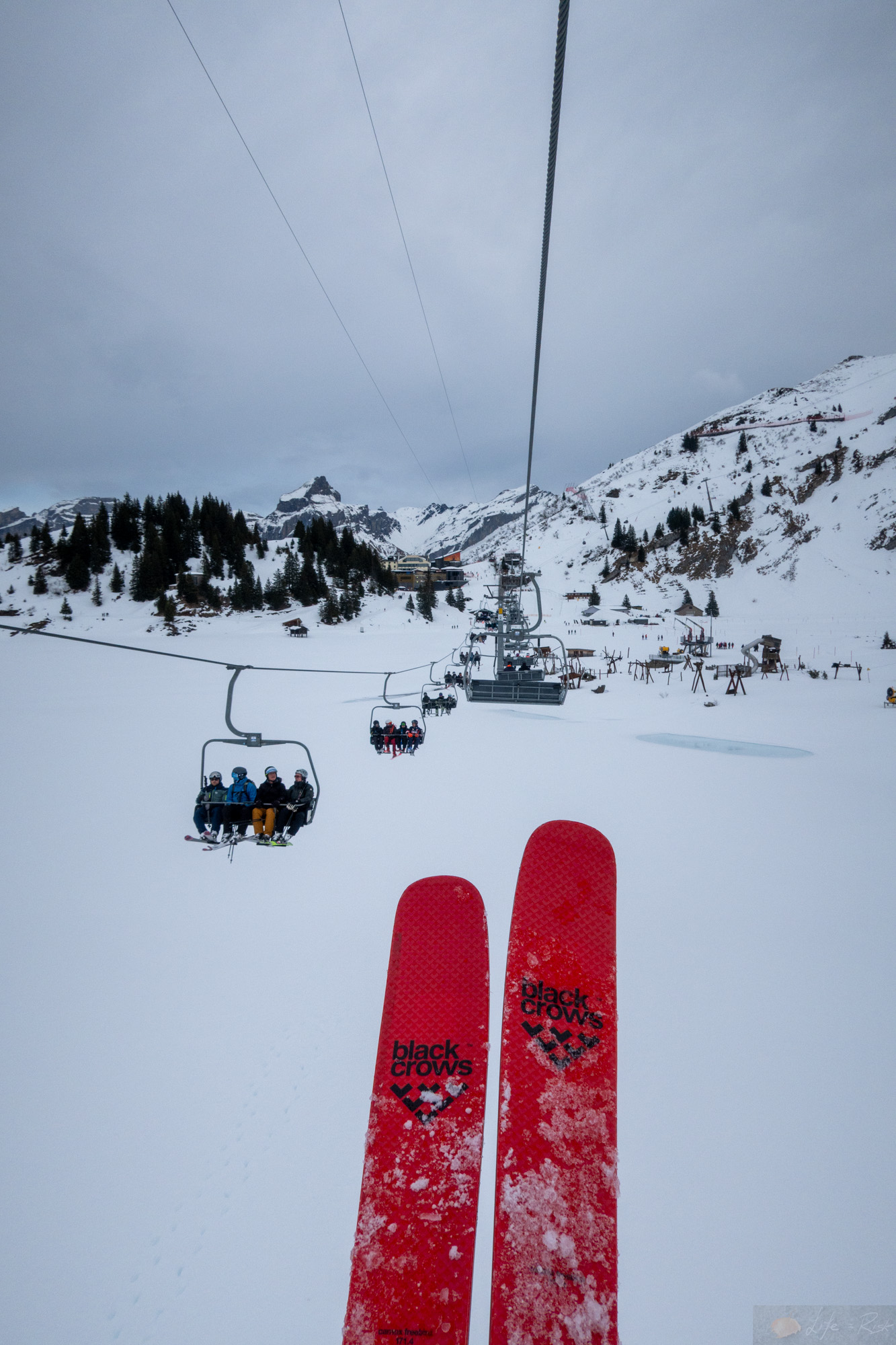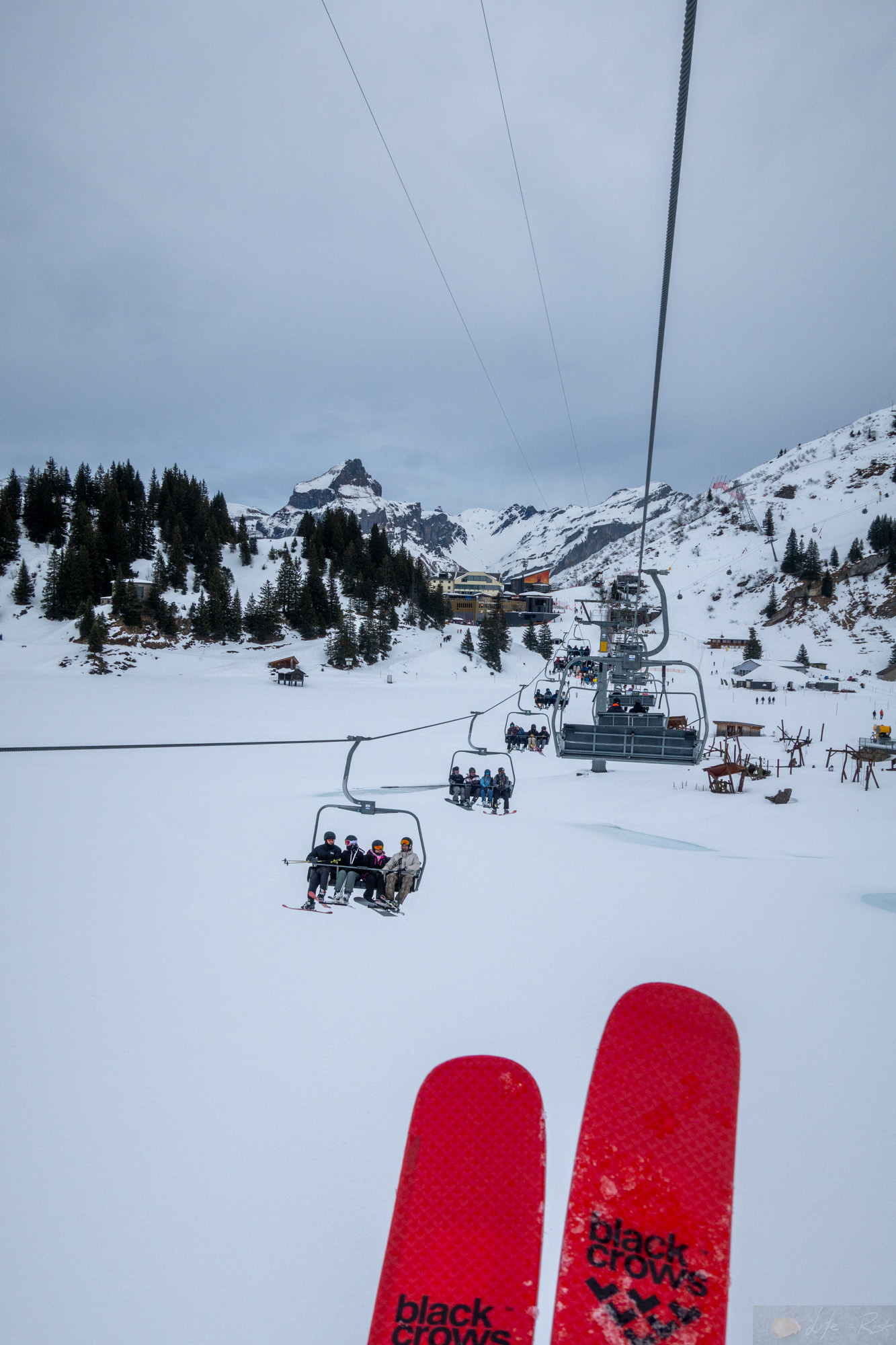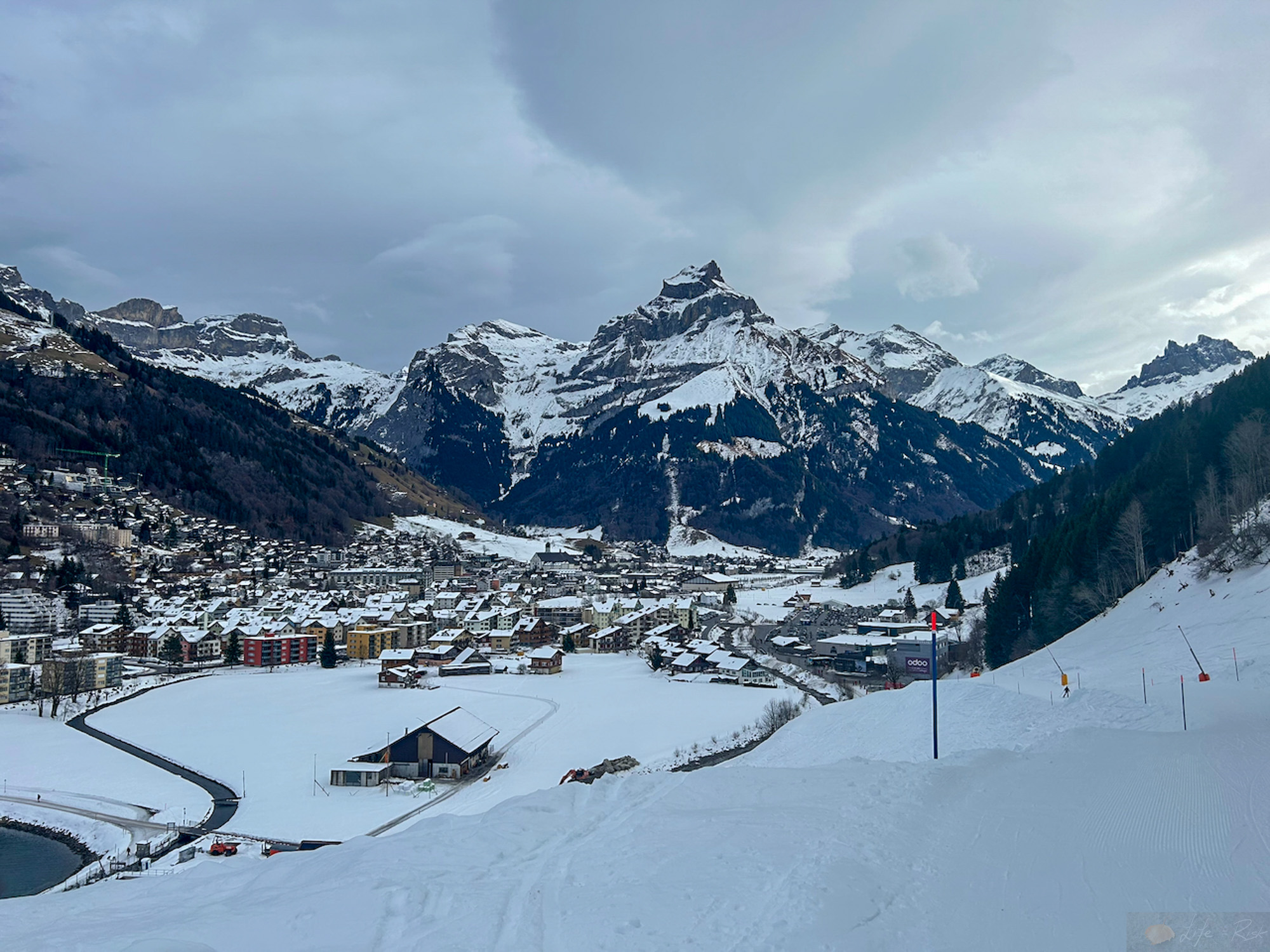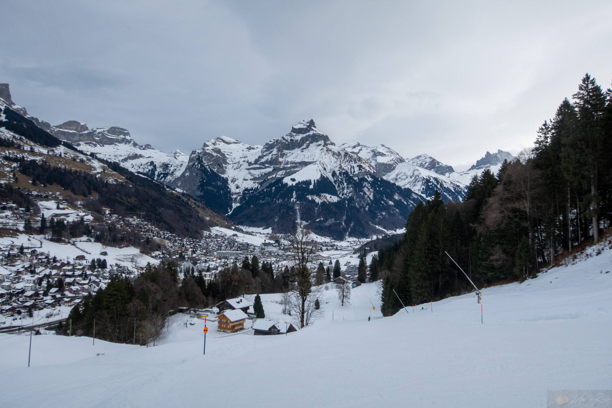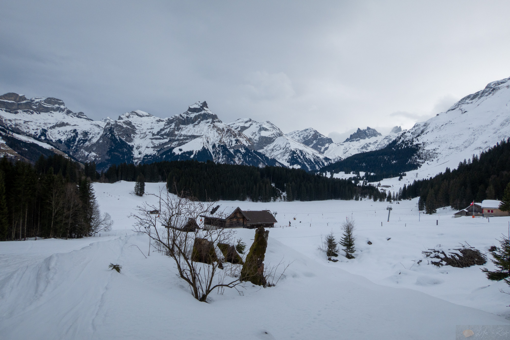 Zurück in Engelberg. Endlich. Auch hier gab es wenig bis gar keinen Schneefall. Für mich aktuell egal, aber dennoch. Tut mir schon etwas für die anderen Leid. Zum Glück blieb es wenigstens kalt, so dass der Schnee auf der Bahnseite vom Titlis in Takt war. Meine leichten Ski waren in der Reparatur bzw. die Bindung auf dem Weg zu ATK. Zum Glück hatte ich damals mit dem neuen Skischuh auch meine uralten Ski mit genommen und darauf anpassen lassen. Somit leisteten sie mir jetzt mal wieder gute Dienste obwohl sie gefühlt nen Kilo schwerer waren. Ich fellte an der Talstation auf und ging langsam los. Anfangs war ich noch irgendwie gehetzt. Meine Gedanken waren überall. Mit der Zeit kam ich wieder in den Rhythmus rein. Ich machte meine Fotos und genoss tatsächlich die bedeckte und etwas schwere Stimmung. Sie passte gerade perfekt. Insgesamt lief es ganz gut. Die Schuhe waren super und ich fühlte ich mich trotz schwererem Ski auch super. Leider wurde der Schnee dann kurz vor dem Kanonenrohr immer „künstlicher“ und pappiger. Das quittierte mein alte Fell damit, dass es zum Stollen anfing. Geil. Ich trat anfangs den Klumpen noch weg, aber irgendwann gings nicht mehr. Also Rucksack runter, nach dem Wachs kramen und das Fell wachsen. Funktionierte nicht gleich, aber nach dem dritten mal Wachsen war es dann ok. So konnte ich den Rest bis zum Trübsee hoch gehen. Ich war schon einigermaßen stolz als ich am Hopper ankam. Ich hätte nicht gedacht, dass ich das schaffe. Hier kurz umgezogen, dann rüber und runter. Warum auch immer verfolgte mich so nen Typ auf der Treppe runter rund es kamen zig leere Gondeln vorbei. Ich sprang noch in die letzte vor dem Flatterband rein, weil ich unbedingt alleine runter wollte und der Typ hinterher. Ich dachte mir nur WTF? Dann wollte er sich auch noch unterhalten und ich zog nur abweisend mein Buff über den Mund. Nicht, dass ich jetzt Angst vor Viren/Erkältung habe, aber es hat mich einfach genervt. Egal. Es war ein super Tag und mein Knie hält weiter und noch mehr.