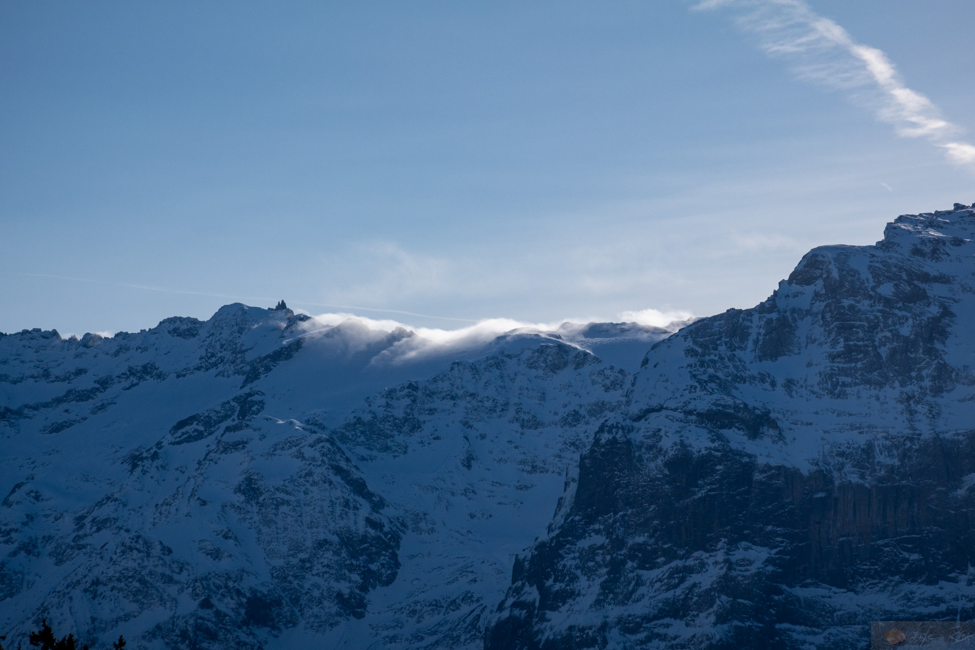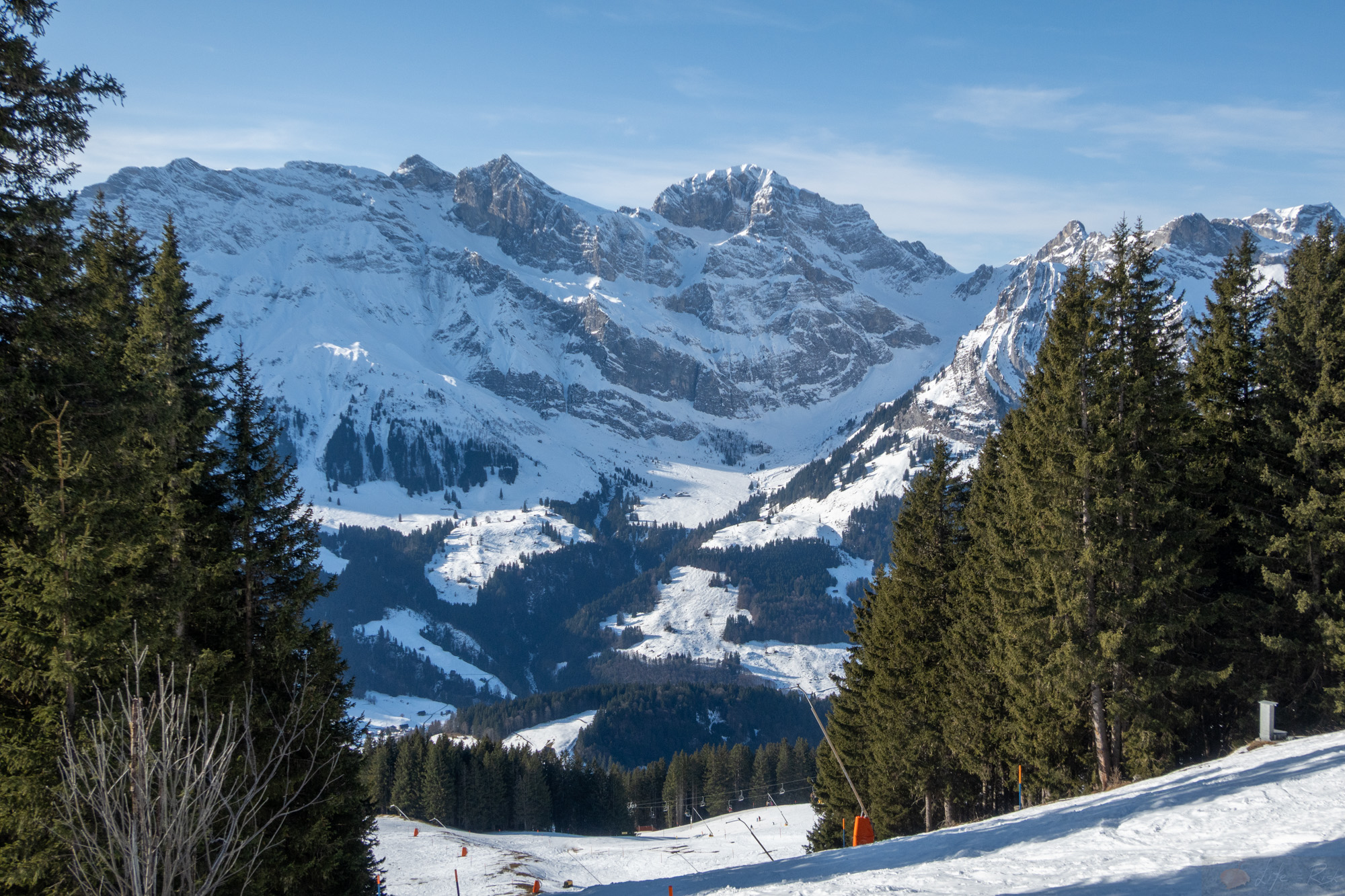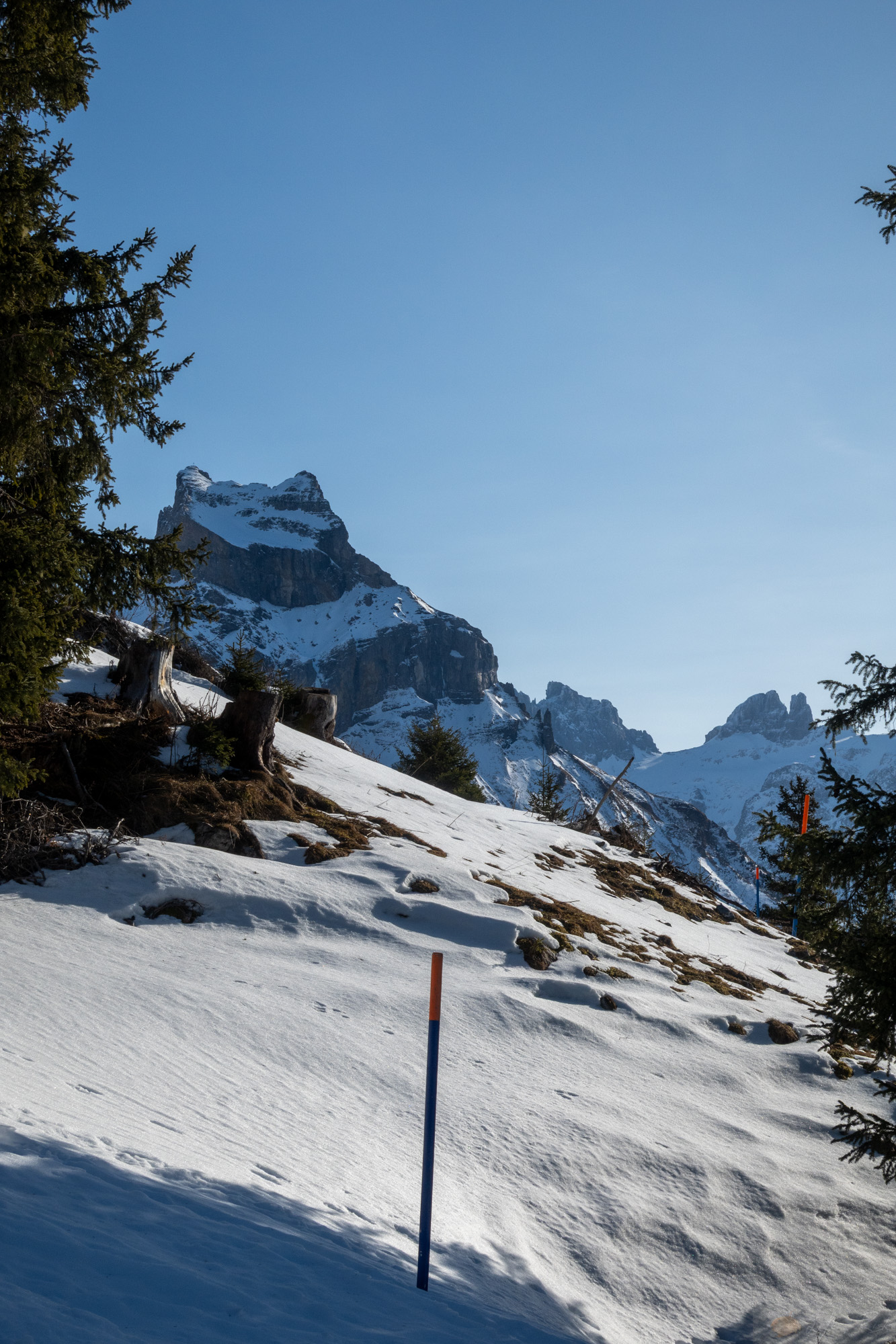 Heute gings wieder mit Laura auf die Südseite…auf zur Brunni. Wir packten unsere Ski, warteten auf den Skibus und fuhren vor bis zum Hahnenblick. Von hier dann bis Stand hoch und dann weiter. Tatsächlich fühlte es sich mittlerweile normal an. Also alles. Das im Schnee sein, dass Skitourengehen, dass Knie. Langsam ging es neben der Piste hoch. Die Sonne war draußen und man merkte insgesamt jetzt schon wie viel stärker sie geworden ist. Schwitzend suchte ich dann im Aufstieg irgendwann den Schatten. Bei einer Lücke in der Baumreihe blieb ich stehen und schaute rüber zum Hahnen…dieses Jahr? Vielleicht.