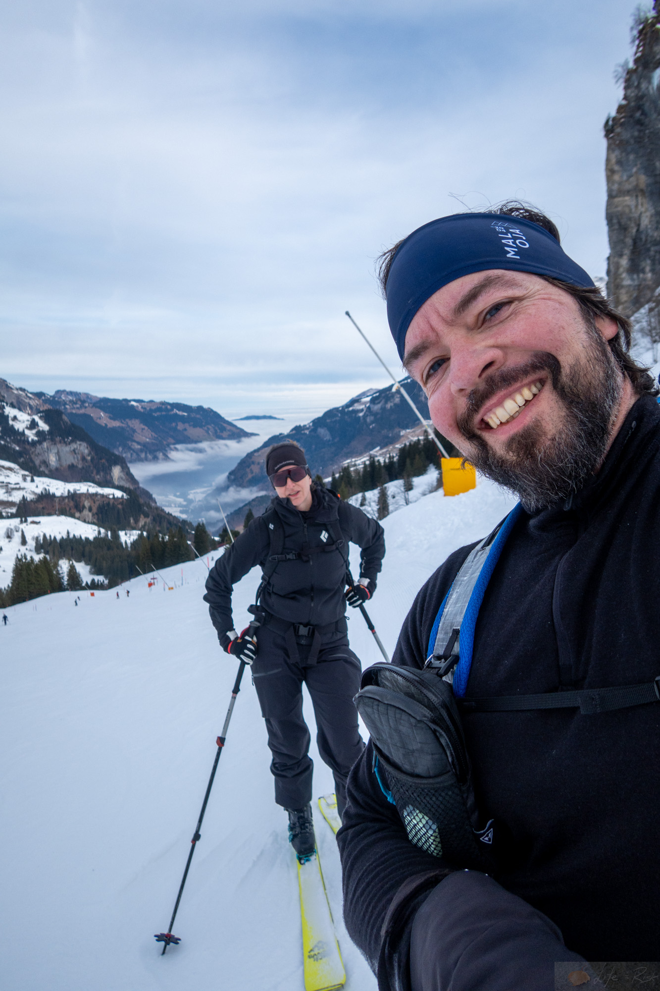 Der eine Pausetag tat gut. Sonntag fühlten wir uns schon wesentlich besser und machten uns auf zur Skitour Richtung Hopper. Tatsächlich lief es insgesamt sehr gut, wir hatten eine gute regelmäßige Pace drauf. Natürlich zog sich das Stück hinterm Kanonenrohr mal wieder und durch die Engstelle selber gings aber dann doch gut. Laura war so fixiert auf den Hopper, dass es kurz einen ersten Moment brauchte um meinen Vorschlag zu realisieren. Dieser war nämlich den Hatscher nach hinten sein zu lassen und statt dessen abzufahren. Ja…ich fühlte mich gut und ready genug um hier abzufahren. Nachdem wir so waren entschieden wir uns dazu noch zur Gondel von Untertrübsee hoch zu steigen, so wie in alten Zeiten. Nur mit dem Unterschied, dass wir solche Touren vor der Arbeit gemacht haben. Oben angekommen hatten wir auch noch etwas Sonne, genossen diese, fellten ab und los gings. Wie immer, also so wie wenn man mit dem Bike los fährt, ist der Anfang das schwierigste bzw. das Pendant zur Rampe. Es war steil. Ich musste mir echt Mühe geben und aufpassen nicht zu verkanten. Danach war ich aber aktiviert und es ging gut. Nur am Kanonenrohr merkte ich dann die Oberschenkel und der Rest war fast mehr verkrampft als locker. Aber es reichte aus die Schussfahrt quasi ohne schieben zu schaffen. Danach folgte der Rest der Talabfahrt. Leider erwischte es ein Mädel vor uns. Sie blieb irgendwo hängen, fiel und verdrehte sich das Knie…Damn…das sah meiner Verletzung sehr ähnlich aus und ihrem Geschrei nach zu Urteilen war wohl etwas durch. Das langt mir immer noch einen Schauer über den Rücken, da ich mich doch noch gut an meine ersten Sekunden nach dem Unfall erinnerte. Was ein scheiß. Laura versicherte sich, dass sie versorgt wurde, es waren auch gleich ein paar Freunde von ihr bei ihr und auch, dass unten Bescheid gegeben wird. Ich fuhr mit einem mulmigen Gefühl vorbei und konzentrierte mich auf die Abfahrt. Unten war ich dann heilfroh ohne irgendwas angekommen zu sein. Anschließend probierte ich die Druckluftreinigungsanlage für die Ski aus, die bei nassem/klebrigem Schnee nur mäßig gut ist. Danach vertrödelten wir noch etwas Zeit im Shop, da wir in der Mittagspause der Busse waren. Irgendwann kam dann ein Bus angefahren, parkte und aus ihm stiegen alle weiteren Busfahrer aus. Danach gings zurück zum Camping. Da wir ja nächstes Wochenende unser Freundewochenende hatte mussten wir gefühlt alles einpacken. Ski, Schuhe, Stöcke, LVS, Kleidung, Proviant, Leergut, Schlafsäcke, Besteckzeug…irre. Aber, was noch fast krasser war, war….dass alles in den MINI gepasst hat. Ein echtes Raumwunder. Sogar die leere Gasflasche. So gings quasi wie die Balkanesen vollbeladen zurück nach Aschau…Was uns etwas unvorbereitet traft war die Tatsache, dass tatsächlich Schnee vorher gesagt war. Leider nicht bei uns sondern genau ab Lindau bei der Rückfahrt. Dort fing es richtig gut an zu schneien und zwar so viel, dass die Räumfahrzeuge nicht hinterher kamen. Hieß am Ende. 40-60km/h auf der Autobahn. Das zog sich dann bis München, wo es zum Glück weniger viel war. Ab München bis Aschau ging es dann wieder super. Ja…blöd, dass kein Schnee bei uns, aber für die Heimfahrt war ich dann doch froh. So passiert es, dass eine 5h Fahrt plötzlich 7h und länger dauert.
