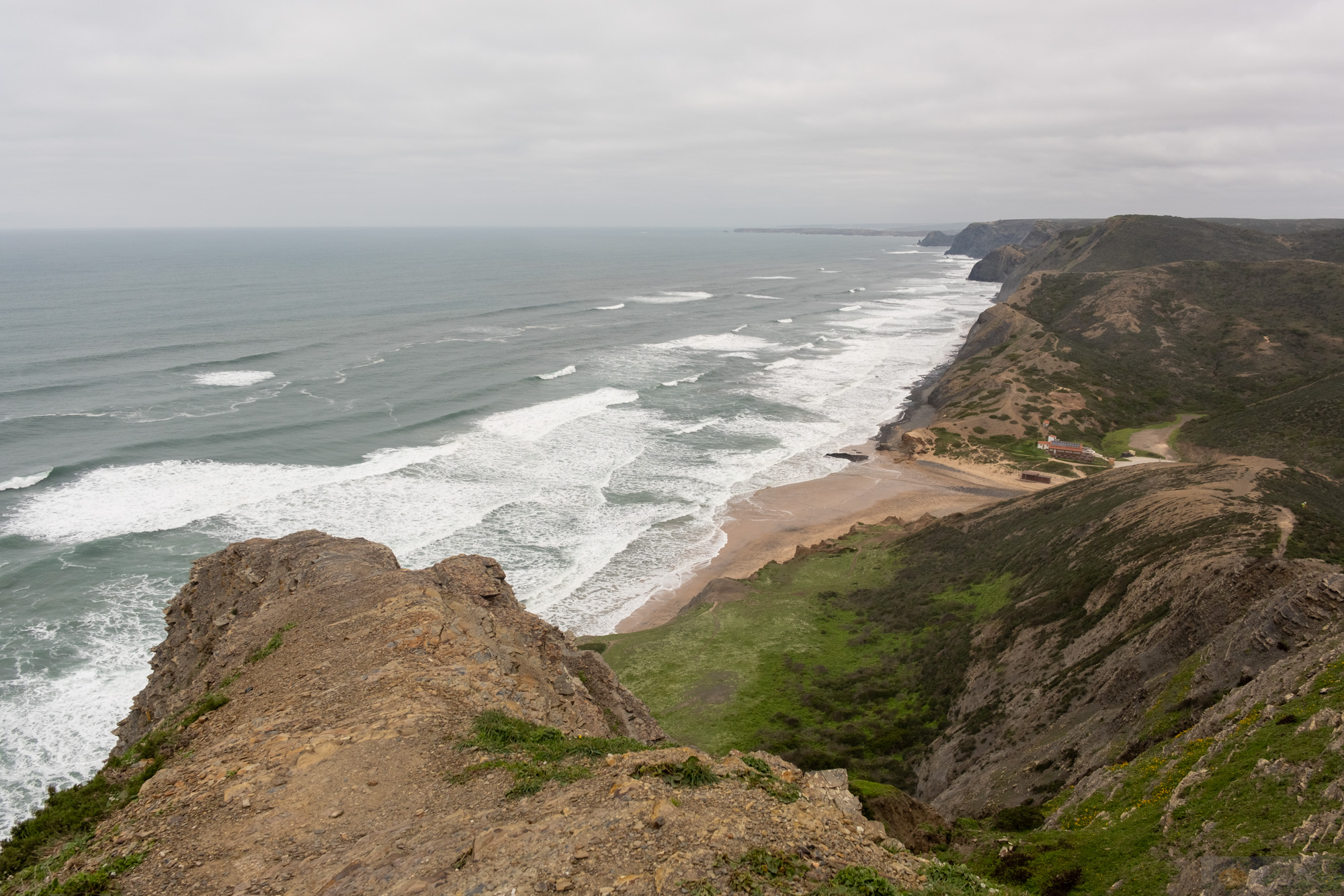 Nach dem Morgenritual mussten wir heute etwas überlegen. Der Wind war nicht optimal für Cordoama bzw. Grenzwertig. Erst gegen Nachmittag sollte er wenn überhaupt gut genug sein, so dass wir den Vormittag locker angehen ließen, mehr Zeit im Bett verbrachten und chillten. Als Highlight, welches Laura schon auf dem Zettel hatte, wollten wir heute zu Mittag das Restaurant der lokalen Fischer besuchen, „A Sereia“. Das lag direkt am Hafen und über der Fischhalle, wo die Waren angeliefert werden. So fuhren wir Mittags rum nach Sagres. Es war voller als gedacht und uns fiel dann auf, stimmt. Es war ja Faschingsdienstag. Die Portugiesen feierten anscheinend genau so gerne Fasching wie die Deutschen. Wie immer, es war zwar alles einfach eingerichtet, aber man merkte schon irgendwie, dass das Essen gut werden würde. Nicht nur, weil es bumsvoll war. Wir gönnten uns zunächst eine kleine Vorspeise (Thunfisch/Sardinen-Paste und Oliven) bevor wir vor gingen an die Theke und die Frisch-Fischauswahl sahen. Wir entschieden uns für eine Scholle und ein Stück Thunfisch, dazu Pommes. Was soll ich sagen. Es war sooo simpel, aber soooo lecker. Richtig gut. Danach hatten wir immer noch den ganzen Tag vor uns. Wir entschieden uns dann noch vor nach Cordoama zu fahren und tatsächlich waren einige Leute in der Luft. Witzigerweise trafen wir hier Till (von unserem Kampenwandverein), der mit ein paar Nova Piloten unterwegs war. Tatsächlich waren auch sie in der Luft, aber bei einigen anderen war es einfach furchtbar zuzuschauen wie sie starteten. Sie gingen, obwohl sie es sicher schon fünfmal bei anderen gesehen hatten, voll in den Lee-Rotor rein, die Schirme klappten zu usw. Andere zogen sich einen Dübel vor dem Flug rein und los gings. Es war sehr …. sagen wir mal verstörend und nicht nahe dem was ich eigentlich wollte. Laura fühlte sich auch unwohl bei all dem, nicht, dass wir noch einen Unfall oder ähnliches live mitbekommen. Somit ließen wir es für heute darauf beruhen und erfreuten uns noch einem chilligen Nachmittag/Abend in der Casa Nook. Was cool war, es war ein Pärchen aus Kanada da und der Typ war sehr Feuer begeistert. D.h. er versucht den Kamin anzuheizen und schaffte es auch. Da man aber immer nachlegen musste kam doch immer wieder Rauch in den Wohnraum rein. Der Kamin war aber cool gebaut und man konnte auch von der Terrasse aus sitzen bzw. nachlegen. So setzten wir uns mit den beiden draußen vors Feuer und genossen die Wärme und auch schöne Gespräche über Kanada, Deutschland, die Welt und die Faszination des Reisens.